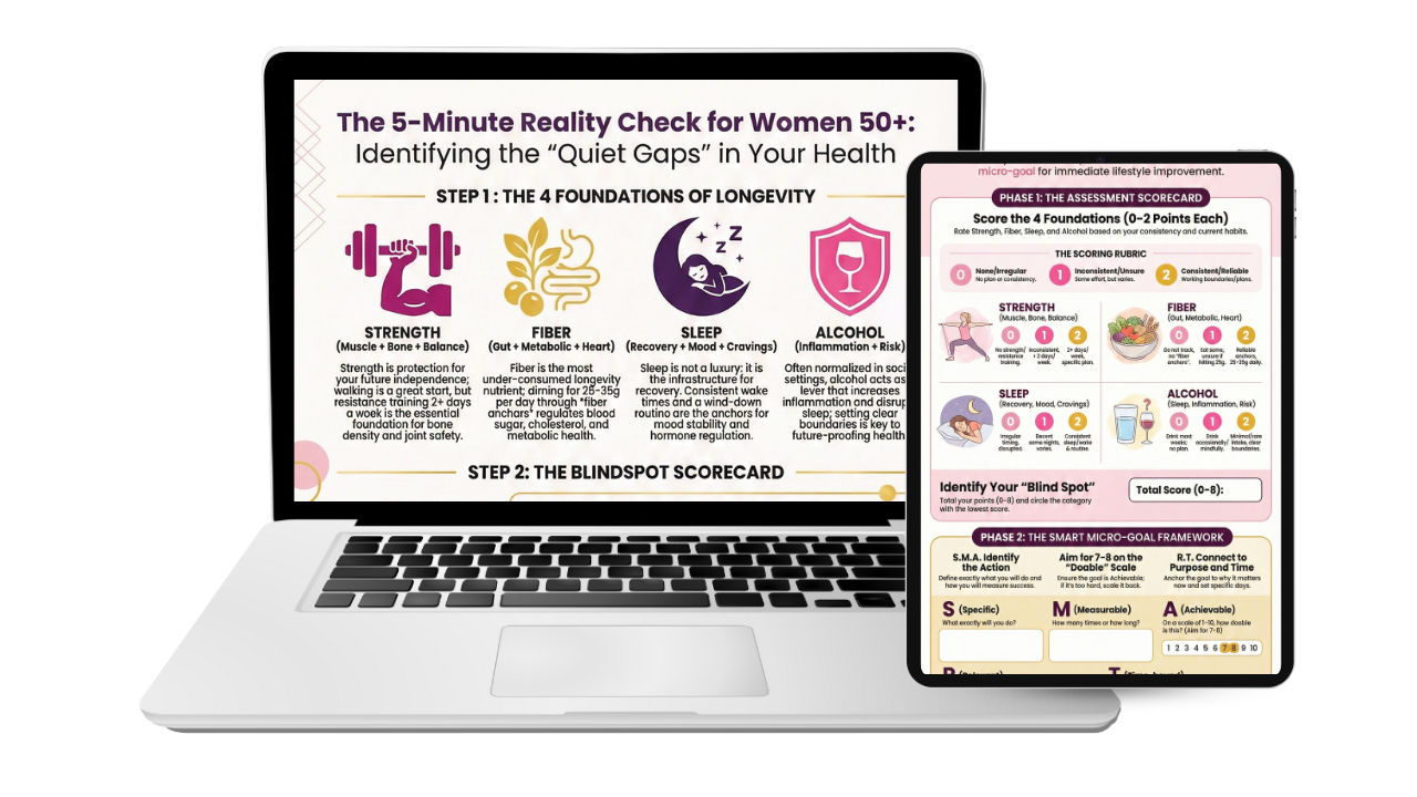 - Fiber: simple “fiber anchors” to make 25–35g/day realistic